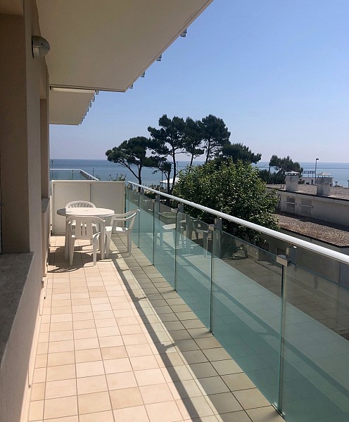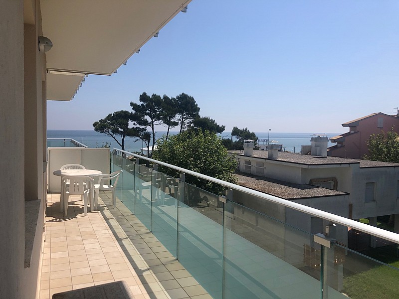 L'appartamento dispone di ampia balconata che gira su due lati della casa, attrezzata per mangiare all'aperto.