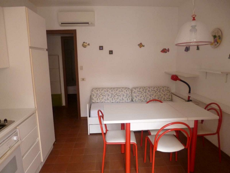 Soggiorno con angolo cottura, camera matrimoniale, camera singola, bagno con box doccia, 1 eventuale 4° posto letto in soggiorno.
