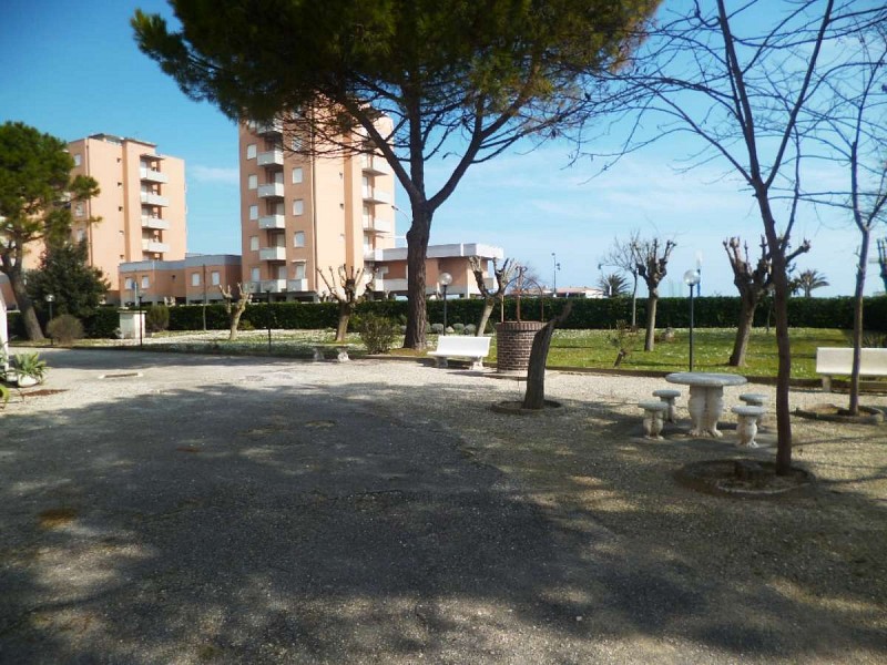 Giardino condominiale molto curato, zona servitissima con bar, ristoranti, stabilimenti balneari e supermercato.