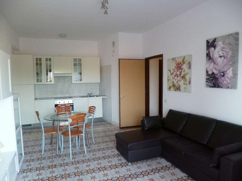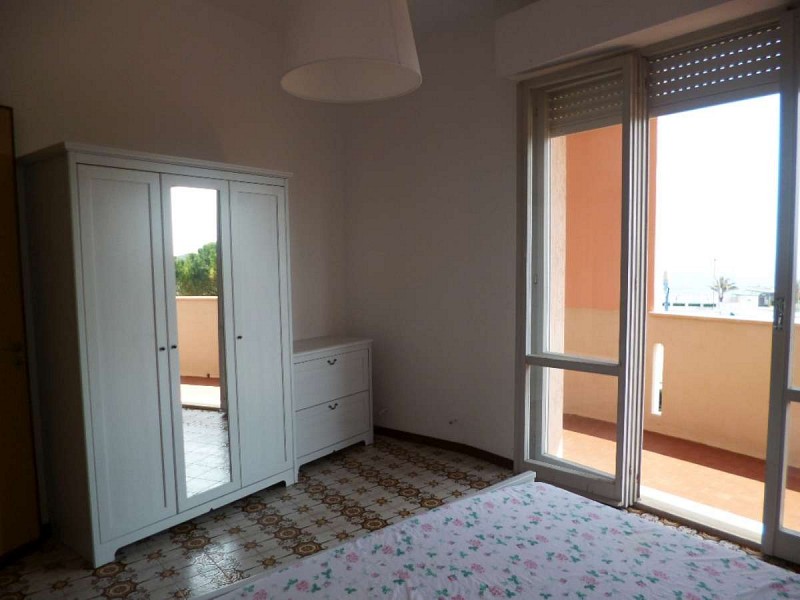 Bell'appartamento trilocale al piano secondo con ascensore , dotato di arredo rinnovato e moderno ! Soggiorno con angolo cottura, camera matrimoniale, camera a due letti singoli, bagno con doccia. Tutte le stanze si affacciano su di un'ampia balconata con vista mare. Posti letto 4/6