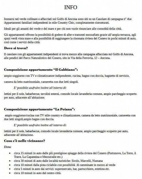 Questa è la soluzione ideale per chi cerca una vacanza all'insegna della tranquillità ed a pochi passi dalla città. In collina, sarete immersi nel verde della campagna, a pochi minuti in auto dal Monte Conero e dalla spiaggia di Portonovo.