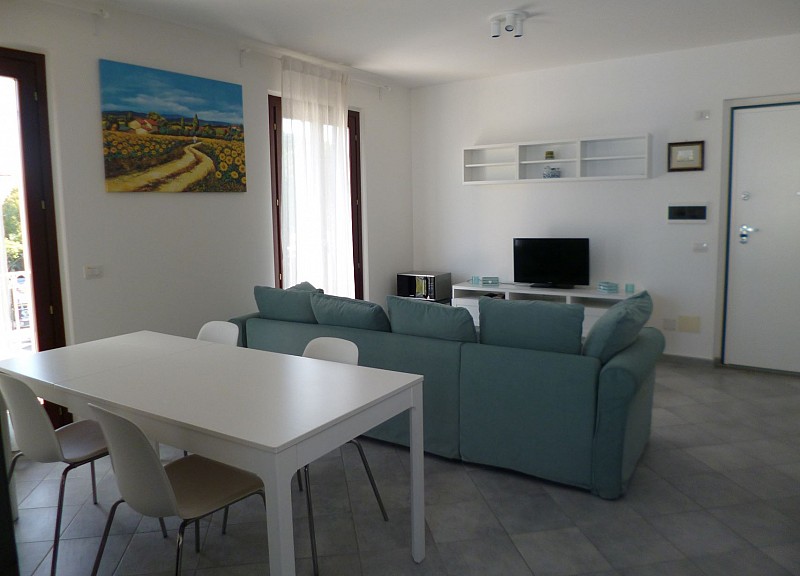 Appartamento di recente costruzione, dotato di tutti i confort: lavastoviglie, lavatrice, TV, frigo XL, con camera matrimoniale, camera doppia, bagno, soggiorno con angolo cottura e divano letto matrimoniale, balcone vivibile con tenda parasole, posto auto, aria condizionata. P/L 4/6